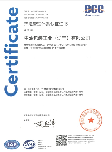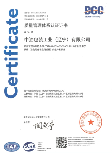 《中油包裝工業》坐落于中國(遼寧)自由貿易試驗區營口片區營口市新聯南大街103號,公司占地面積達6萬余平方米。是由營口北方制桶設備科技有限公司全資投資的公司,充分依托北方制桶設備的技術優勢, 建有三條智能、環保、低碳及高速制桶生產線,年產500萬只55加侖國際鋼桶。擁有幾十臺套數控加工中心,智能焊接機器人,智能裝配設備,年產1200臺套高效節能全自動鋼桶生產設備。員工200人。其中工程技術人員12人。