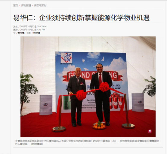 新加坡新聞8頻道《新聞及時事節(jié)目》、新加坡《聯(lián)合早報》、新加坡《財經早報》都對新加坡用戶的開業(yè)盛況做了報道。營口北方制桶設備科技有限公司作為全套制桶設備集成供應商,很榮幸一起榮登新加坡《聯(lián)合早報》。